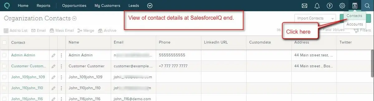 - Fornisce la sincronizzazione degli utenti negli elenchi alla fine di SalesforceIQ.